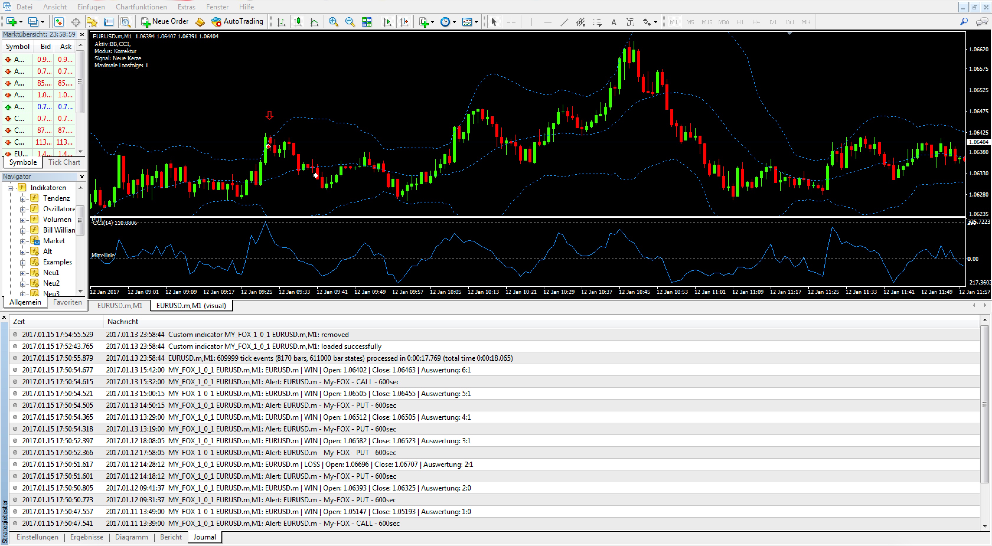 Beispiele von Funktionen vom Bollinger Band Indikator: